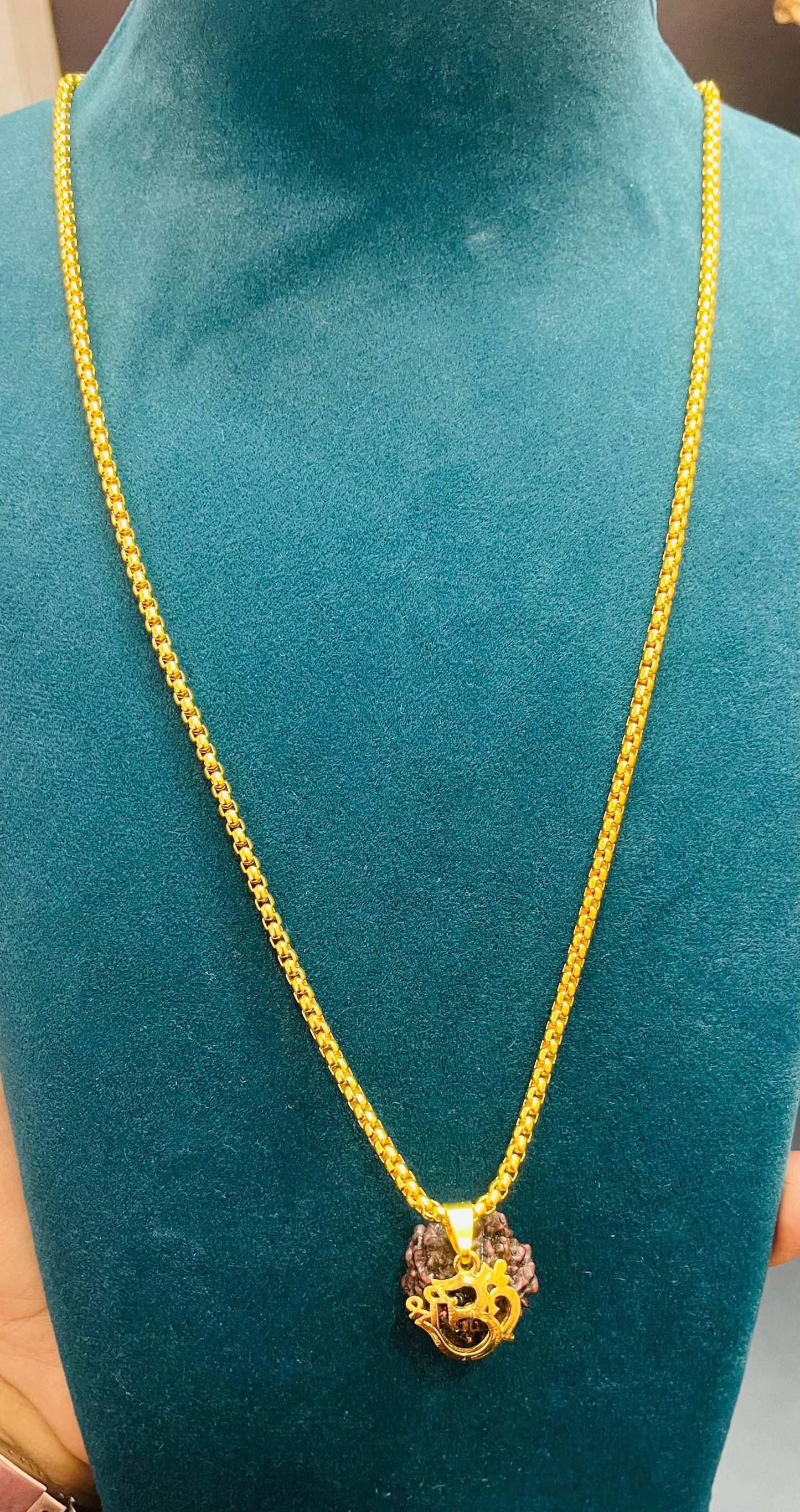 Om Rudraksha Pendant with Gold Alloy Chain for Men – Casual Spiritual Jewelry
