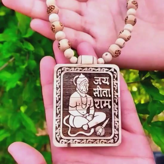 Tulsi Kanthi Mala With Hanuman Pendant for Men – Wooden Locket Set (Pack of 2)